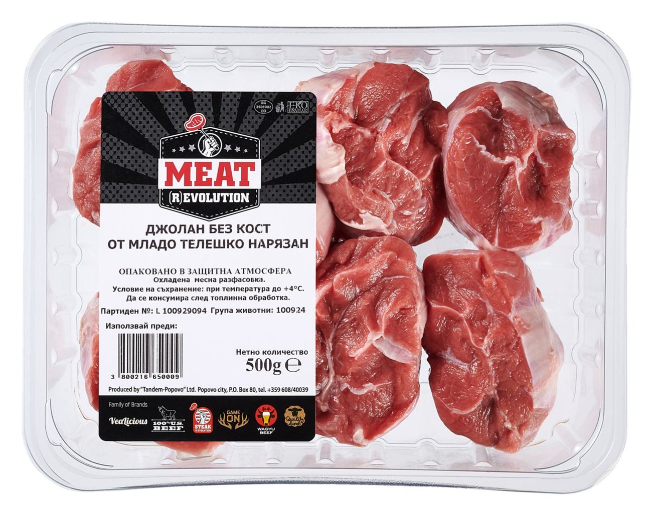 от млади телета нарязан