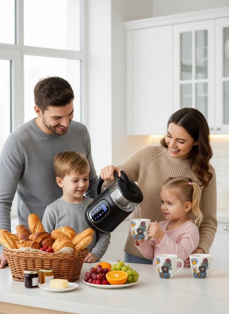 Уреда е изработен със захранваща се поставка, която ще улесни употребата на каната дори в малки кухни.