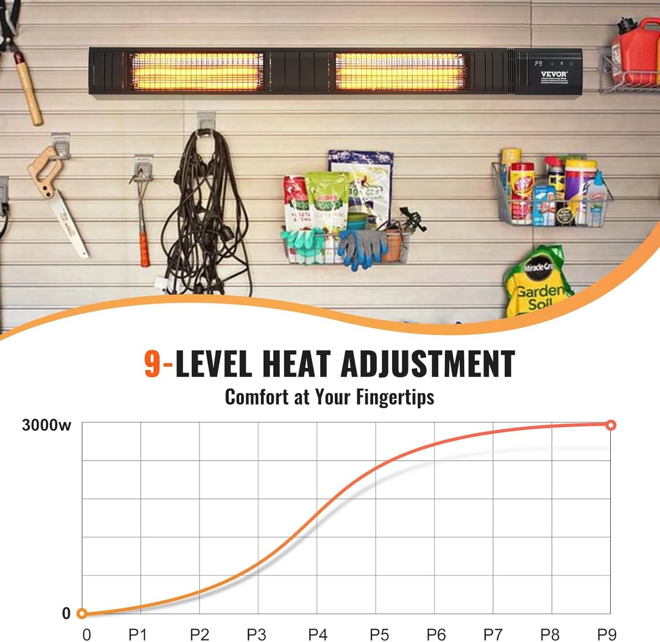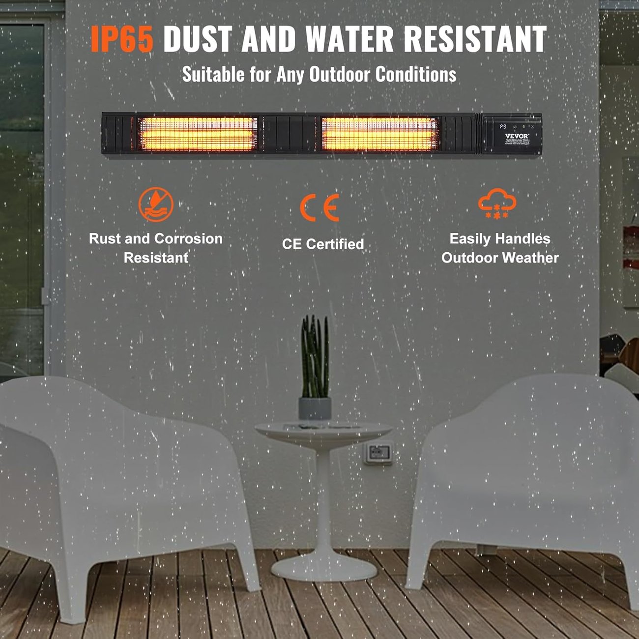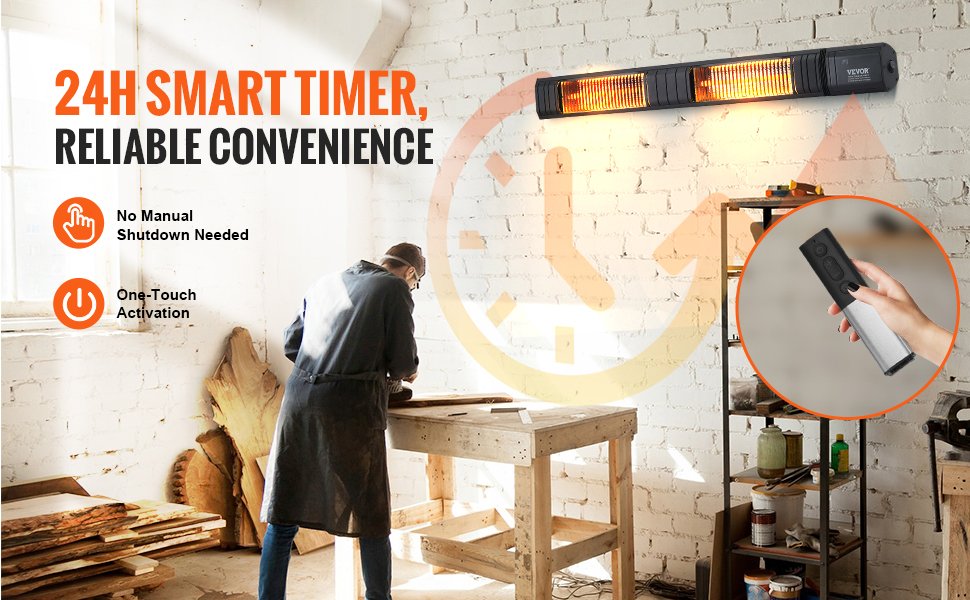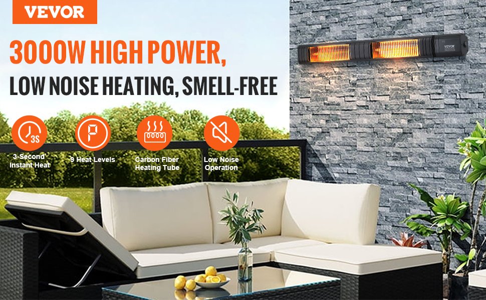 Vevor T17-GR30B е двоен електрически инфрачервен отоплител с дължина 102 см, изработен с 2 броя карбонови (въглеродни) нагревателни елемента, които са значително по-издръжливи и устойчиви на амортизация от обикновените кварцови.