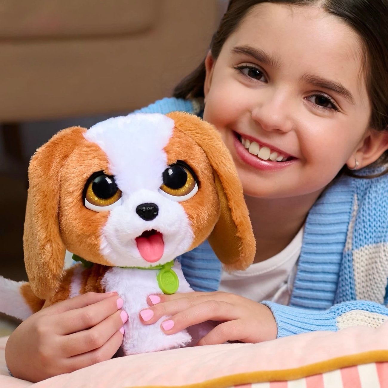 Интерактивното плюшено кученце Fur Real 28159 е вдъхновено от породата Кавалер Кинг Чарлз шпаньол и е чудесен подарък за всеки малък любител на животните.