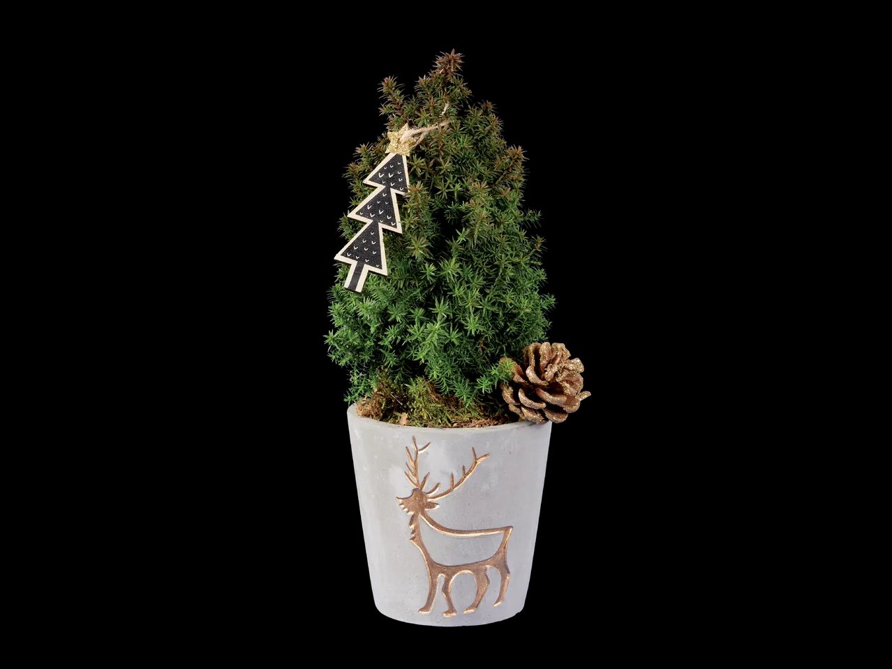 • В керамична кашпа с коледна декорация