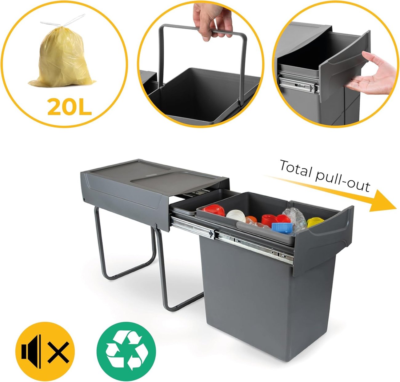 Emuca 8199323 е кош за отпадъци, предназначен за вграждане в кухненски шкаф.