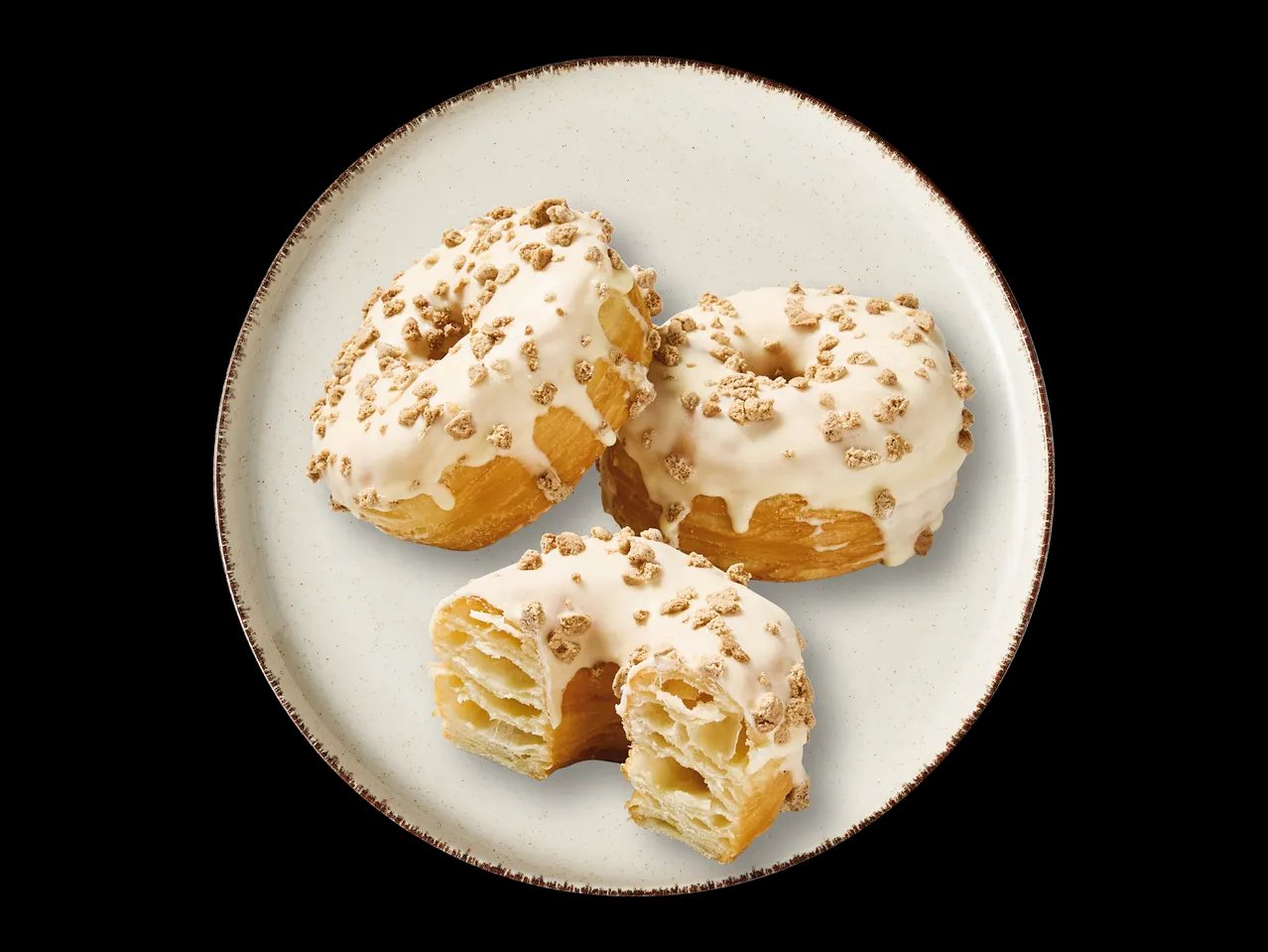 • С глазура с бял шоколад и поръска от натрошени бисквитки с канела
