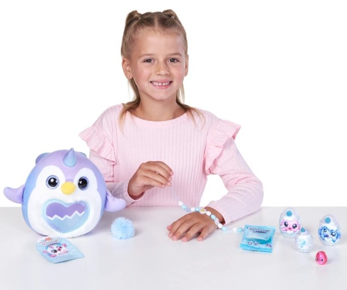 Когато детето прегърне голямото яйце, то ще се отвори и ще открие една от седемте колекционерски плюшени играчки, всяка със собствен стил и чар.