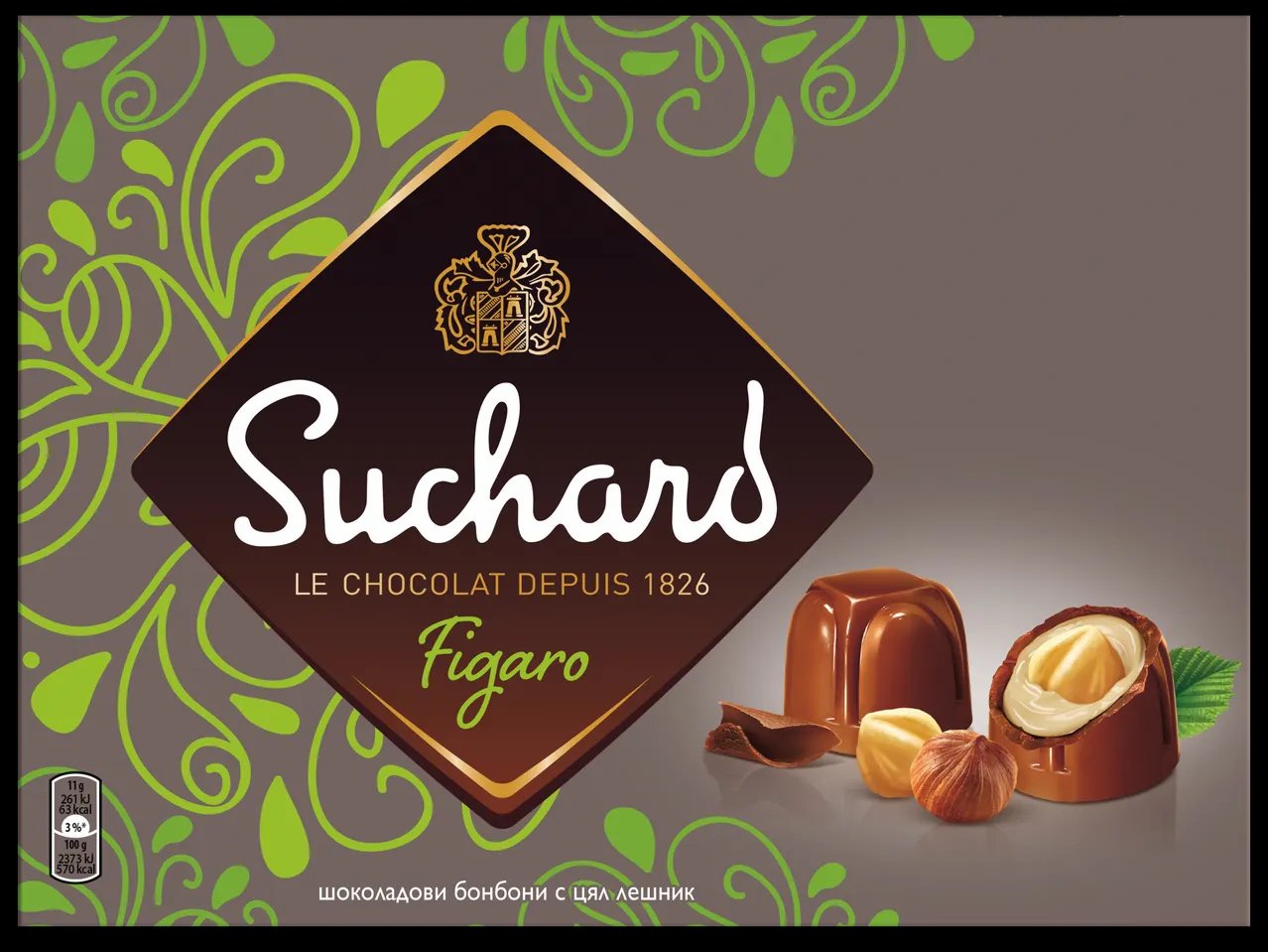 Шоколадови бонбони с цял лешник